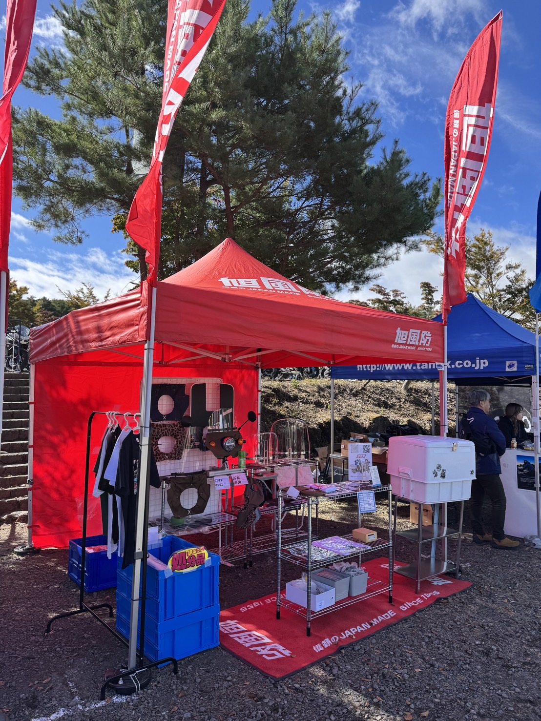 記念すべき第1回となるこのイベントには、全国から多くのライダーが集結。私たち旭風防も出展させていただきました。