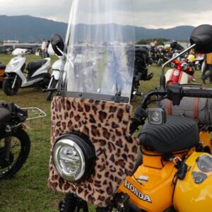 思わず「こんな付け方があるんだ!」と驚かれされる個性あふれる旭風防のカスタムも多く見られ、私たちメーカーにとっても、新しい発見となる場面でした。
